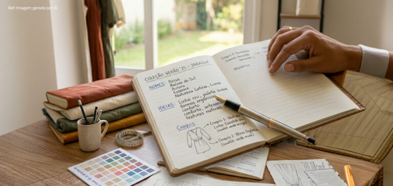 Seja explorar referências, anotar palavras soltas, observar sensações ou até testar combinações inesperadas, esses são caminhos que facilitam o processo. No fim, o mais importante é permitir que a imaginação flua e entender que o nome também faz parte da construção criativa da coleção.