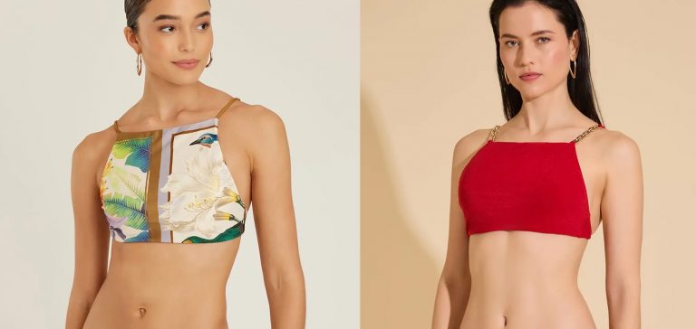 Nesse modelo de sutiã, as alças contornam o pescoço, deixando as costas livres. Diferente dos modelos comuns, onde geralmente as alças são modelo regata, essa peça costuma unir mais os seios.