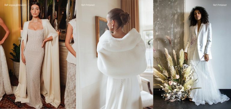 Portanto, seja em versões mais leves, rendadas ou com aplicações delicadas, ou em modelagens limpas e estruturadas, o casaco permite que a noiva se mantenha aquecida estando também impecável.