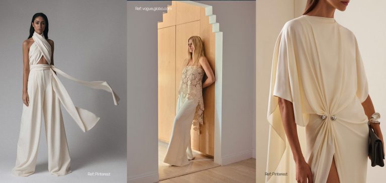 Por fim, sabemos que cada vez mais, o casamento deixa de ser apenas um momento e passa a ser uma experiência completa. Por isso, entramos na tendência de: looks para o fim de semana! São as peças que acompanham a noiva em diferentes ocasiões, desde a recepção, a festa e até encontros mais intimistas antes ou depois da cerimônia.